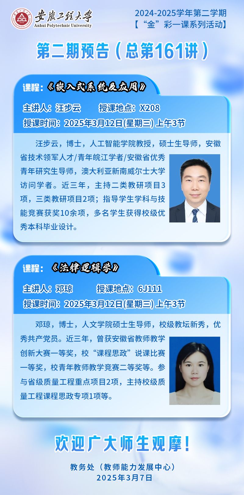 2024-2025学年第二学期【“金”彩一课系列活动】第二期预告(总第161讲)