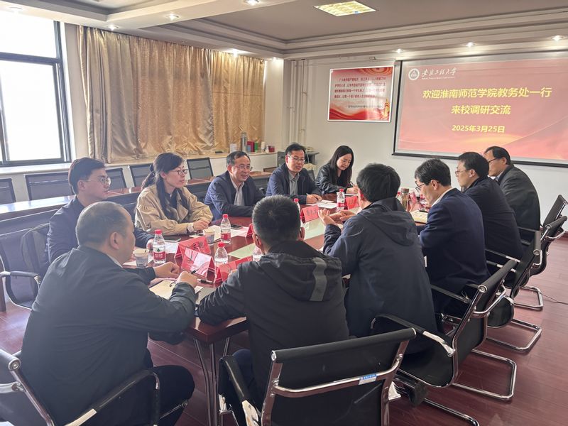 本网讯 3月25日,淮南师范学院教务处处长鲁先文、副处长沈晓波一行5人来我校调研交流,教务处负责人及相关科室人员参会。