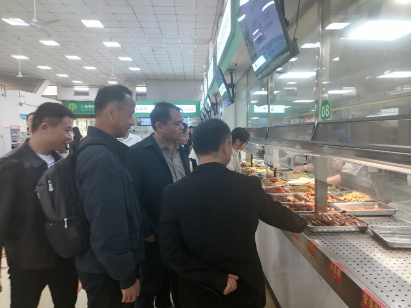 会上,膳食服务中心主任彭经伟展示了食材采购监管系统(食材商城),演示了系统从订单管理、数据统计、膳食营养结构、监督核减等方面使用功能。交流结束后,与会人员前往食堂调研。