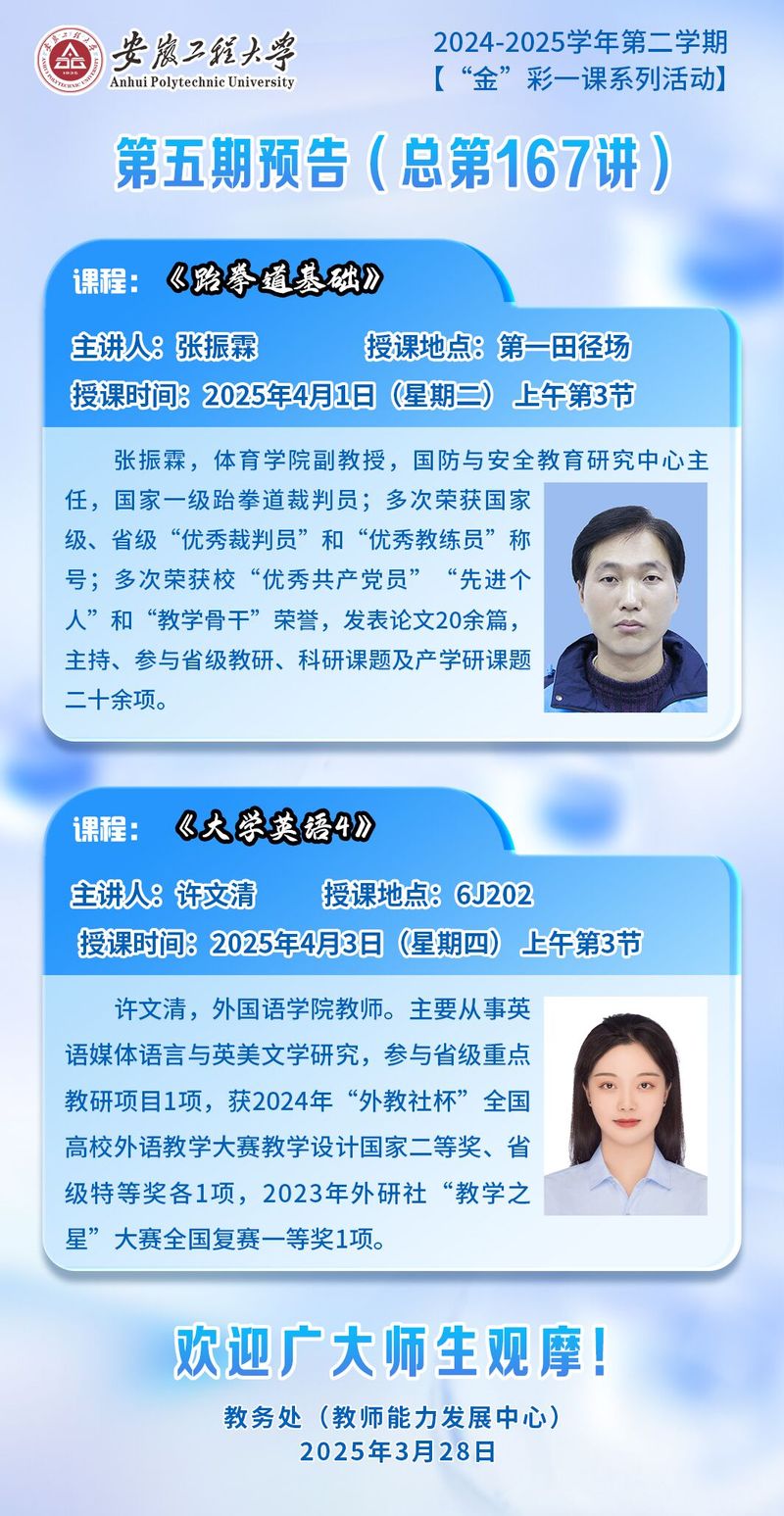 2024-2025学年第二学期【“金”彩一课系列活动】第五期预告(总第167讲)