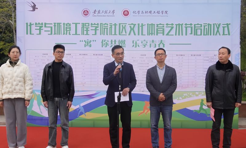 本网讯 3月30日,化学与环境工程学院2025年“‘寓’你共燃,乐享青春”社区文化体育艺术节启动仪式在学校一站式社区广场隆重举行。校学生处处长黄炜、校团委书记李恒奎、学院党委副书记胡承功出席了本次活动,学院团委负责人、辅导员以及各班级代表共同见证启动时刻。活动由胡承功主持。