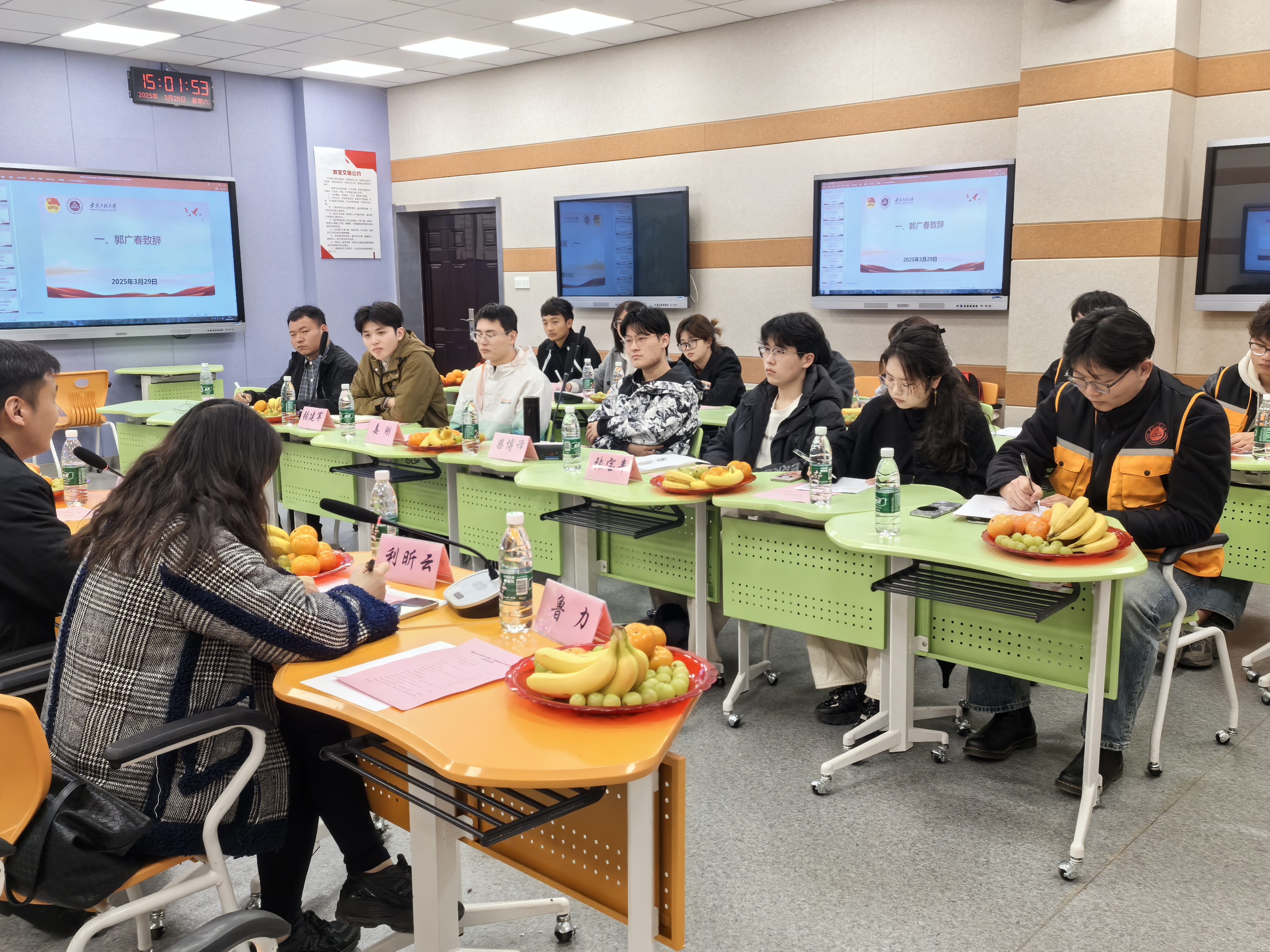 郭广春在致辞中肯定了调研团队五年来在乡村振兴领域的实践成果,指出了调研团队未来的工作和发展方向,鼓励现任成员要弘扬团队精神,以锐意进取的精神、奋发有为的姿态赋能乡村振兴,书写新时代青春答卷。赵争结合驻村工作经历,简要介绍了龙山村发展现状,提出人口空瓶化、发展同质化等乡村发展建设存在的问题,指出调研团队要针对乡村的实际情况开展深入细致的调研,为乡村振兴提供切实可行的解决方案。后勤保障处办公室主任谢红翠强调调研团队要注重沟通协作,形成强大合力,传好新老“接力棒”,续写乡村振兴“新篇章”。材料科学与工程学院辅导员鲁力围绕繁昌区材料产业发展现状,提出下一步调研思路,为调研团队和示范班后续开展实践活动指明了方向。