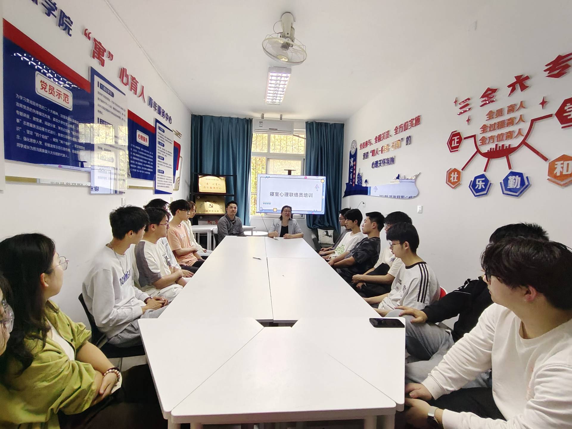 本网讯 为深化四级心理健康网络体系建设,扎实推进心理健康教育工作,提升学生朋辈心理互助能力,4月9日,学院持续开展寝室心理联络员赋能行动,学院心理健康联络员承孝云在“寓”心育人青年服务中心为寝室心理联络员开展专业技能培训,学院党委副书记孙德茹参加活动。