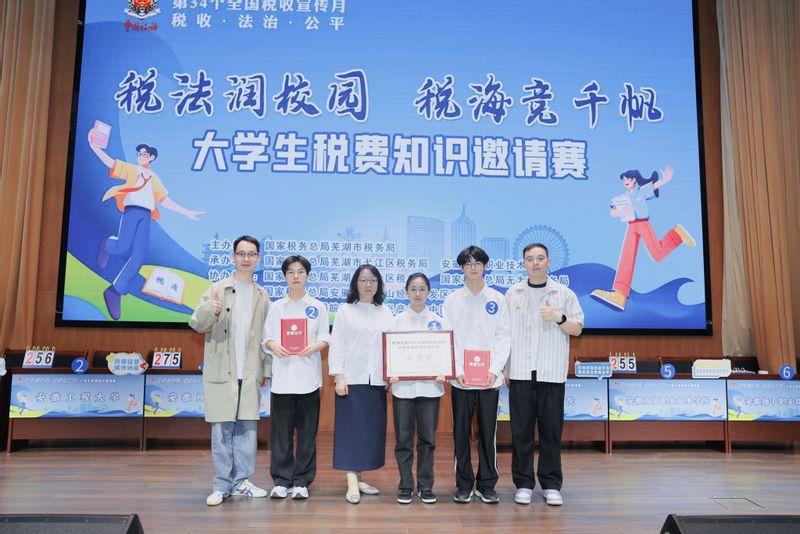 本网讯 4月9日,芜湖市第34个全国税收宣传月大学生税费知识邀请赛在安徽商贸职业技术学院落幕,来自安徽师范大学等6所高校同台竞技,人工智能学院学子在激烈的竞争中脱颖而出,最终荣获二等奖。