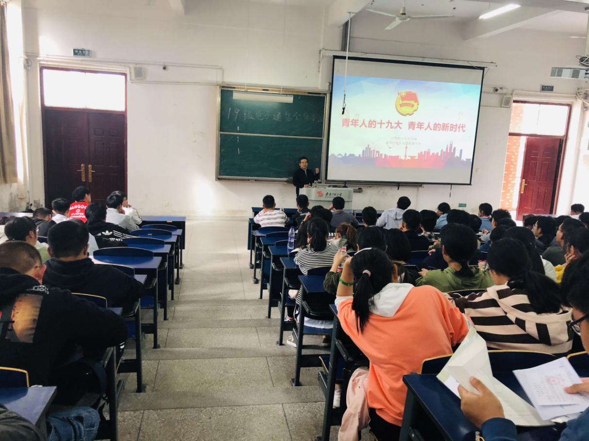 1010日下午,童超梅老师以“新时代”为基点,通过共青团的使命、性质及任务、三个“必须”、新时代青年不忘初心四个部分带领服表19级新生同学了解共青团。共青团是中国共产党领导的先进青年组织,是广大青年在实践中学习中国特色社会主义和共产主义的学校。新时代青年是国家的希望,应牢记党的宗旨,为实现中华民族的伟大复兴矢志前行。