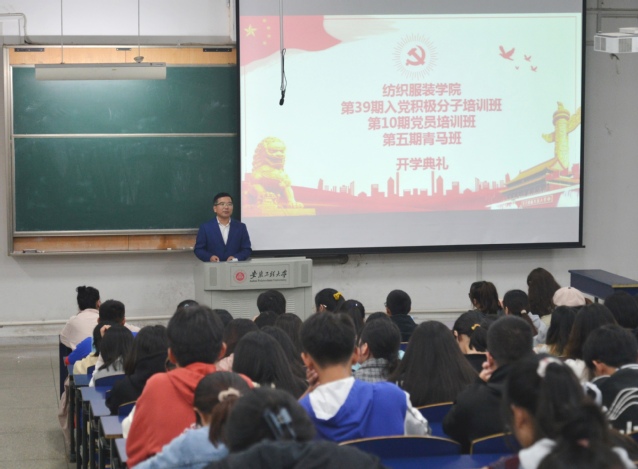 10月27日晚,纺织服装学院第三十九期入党积极分子培训班、第十期党员培训班和第五期青马班开班典礼在6教214举行。学院党委副书记、分党校副校长孙宏义、组织员、团委书记以及全体培训班的学员参加了开班典礼。典礼由班主任童超梅主持。
