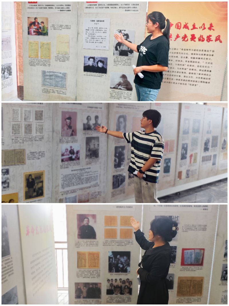 讲解过程中,讲解员志愿者充分借助家风档案馆内的丰富资源,如图片、信件等档案实物材料,并穿插纪实革命故事,促进红色文化交流。与此同时,讲解员巧妙结合家风精神,分享红色故事,聚焦红色事迹热点,始终秉持着进行思想引领的核心目标,促进红色档案、红色故事走进校园,不断弘扬红色精神,赓续红色血脉。学生讲解员方钰卓以毛泽东同志的家书为切入点,深入浅出地讲解了中国共产党人不怕牺牲、不屈不挠,坚持理想、坚持信仰,视死如归,甘愿为革命事业的奉献精神。