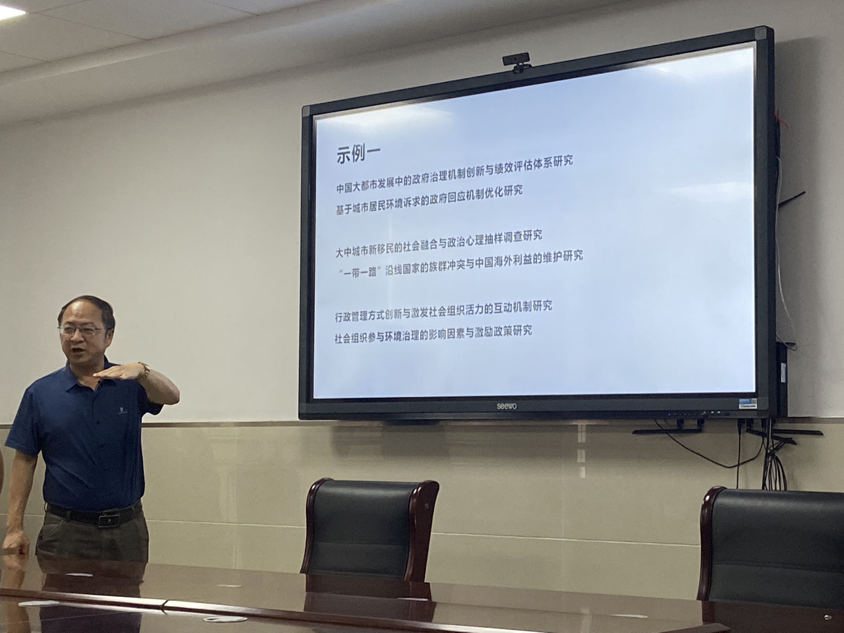 颜佳华作了“一流专业与一流课程建设的支撑体系——关于科研的思考”的报告。他首先介绍了湘潭大学与湘潭大学公共管理学科的发展历程,结合自身长期参与专业建设和专业评估的经验,指出专业建设与课程建设同样离不开科研。接下来,他从什么是科研、如何对待科研、如何做好科研等方面,以丰富的案例、生动的语言,勉励青年教师认真开展科研,重视课题申报、论文写作投稿的策略与方法,积极参与教学竞赛、开展教学研究。参会教师围绕一流专业建设点检查评估、青年教师成长、专业招生、论文投稿等问题与嘉宾进行了交流。