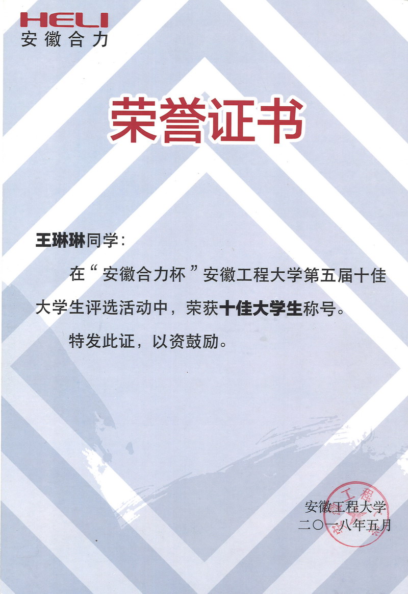 2018年获安徽省大学生未来律师辩论赛团体三等奖