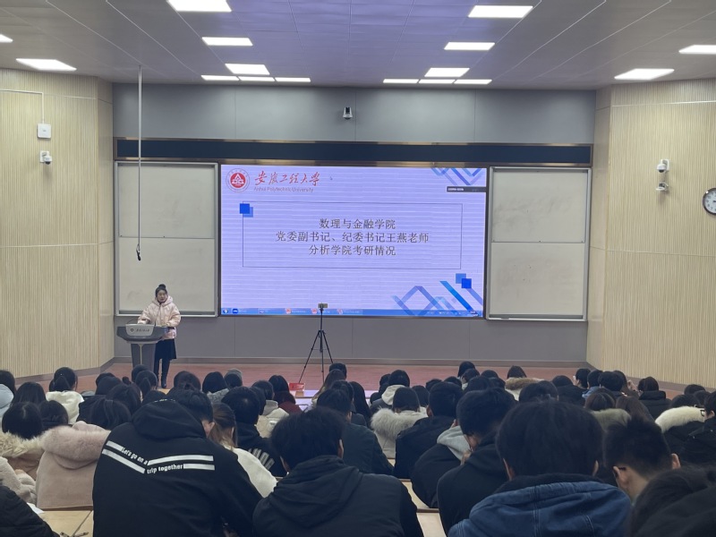 12月17日下午,数理与金融学院在二教报告厅举办考研动员大会。学院党委副书记、纪委书记王燕、副院长吴小太、19级辅导员程安琪参加会议,为大三年级同学分析考研形势、分享考研方法,鼓励同学们理性选择、务实规划,备战考研。