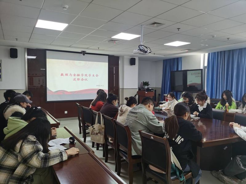 2022年3月2日中午,数理与金融学院团委学生会在图书馆1612开展述职报告会。学院团委书记、团委学生会各部门代表参加会议。