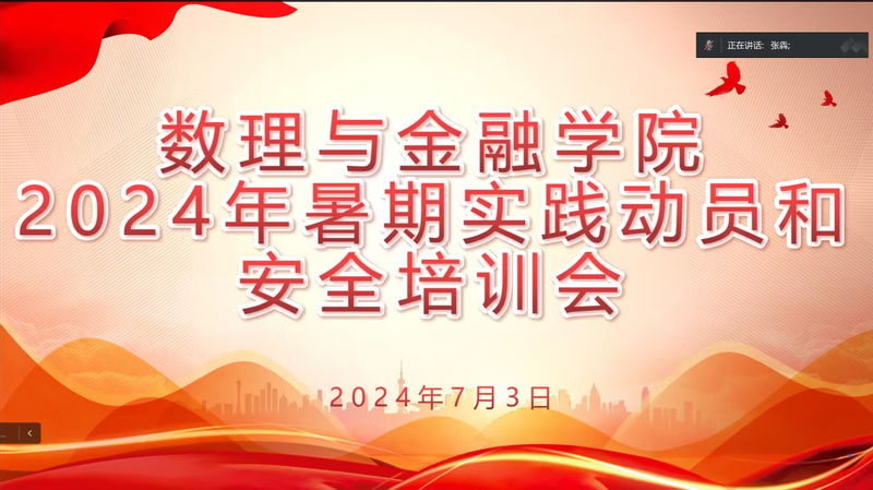 为扎实推进暑期“三下乡”社会实践活动, 7月3日,数理与金融学院利用线上形式召开2024年暑期社会实践活动动员和安全教育培训会,校团委副书记姚伟波、学院党委副书记何志恒出席会议,学院辅导员、22级全体同学、23级学生代表参加会议。
