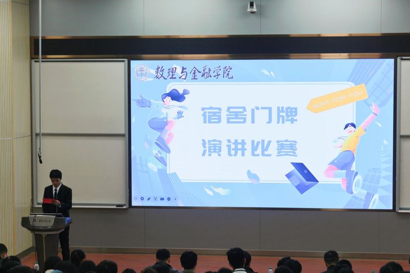为深入推进“一站式”和谐学生社区建设,深化宿舍育人功能,激励广大同学积极参与和谐宿舍“家文化”创建,数理与金融学院于10月22日在2教报告厅举办宿舍门牌设计比赛现场展示,学校后勤党总支正处级组织员柴方松、学生处副处长杜松涛、学院党委副书记何志恒、学院24级辅导员汤建文、学院兼职辅导员丁奎和张海坤及学生代表担任评委,300余名学生代表参加。