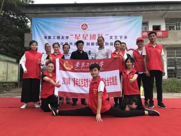 为深入学习贯彻习近平新时代中国特色社会主义思想,更好地引领教育广大团员青年勇做担当民族复兴大任的新时代生力军,以实际行动庆祝中国共产主义青年团第十八次全国代表大会胜利召开。体育学院星星“送文艺下乡”团队从71开始在铜陵市枞阳县开展了丰富多彩的文艺演出活动,他们用精彩的文艺演出活跃了社区群众的精神生活,用精湛美妙的舞蹈艺术传递了激昂向上的文化自信,为乡村振兴和精准扶贫插上了坚强的翅膀。