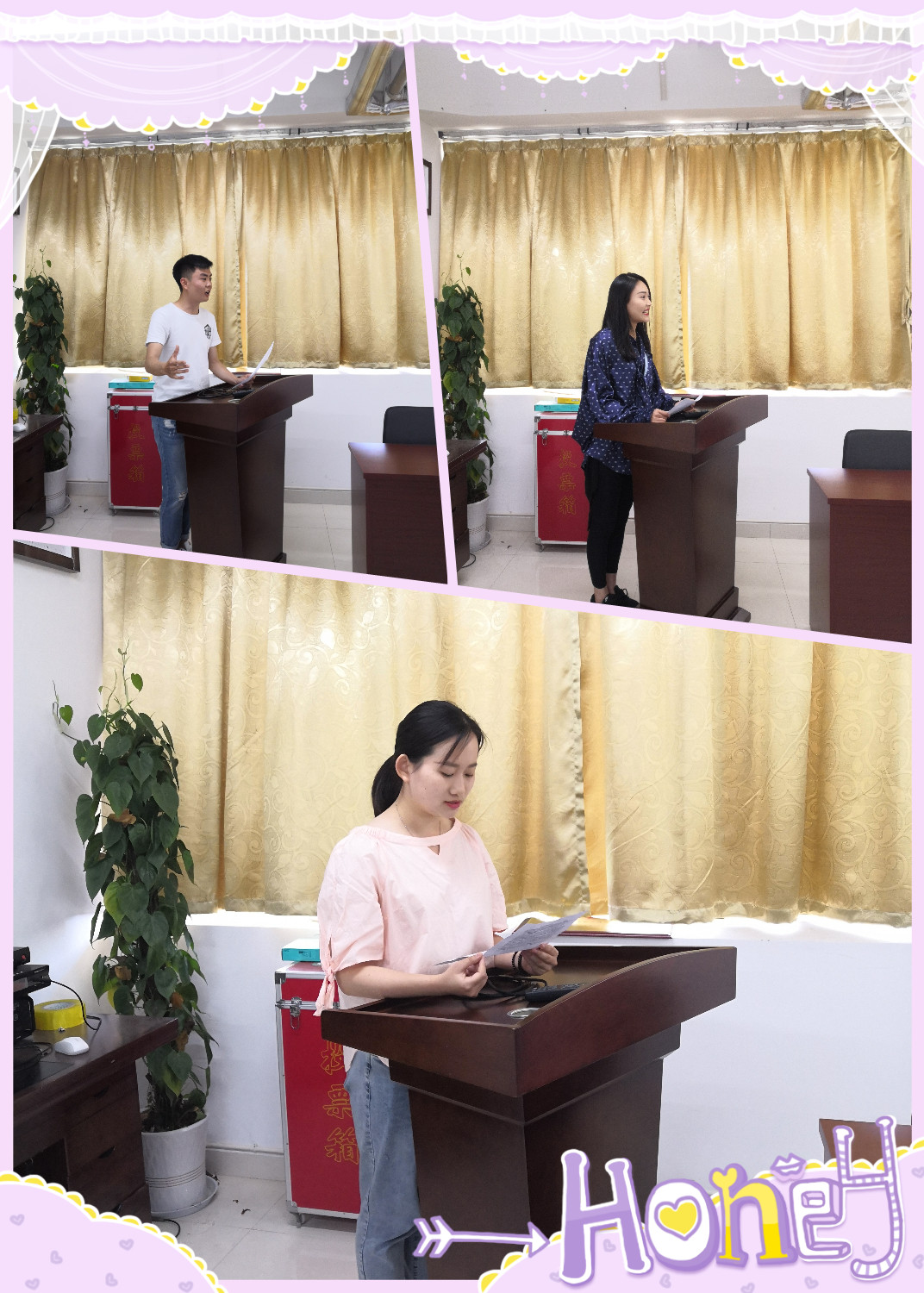 会议第一阶段是三位考研优秀学生代表作经验分享。汪雨然同学从明确考研目的,做好前期准备这个角度分享了自己的心得体会;王紫璇同学教会了同学们如何收集考研的有利信息、选择适合的学校和专业;李炬同学结合自身的考研心路,着重强调了培养自信和调整心态的重要性,并鼓励大家战胜一切阻力,咬定青山不放松就会收获成功。三位同学的分享,赢得了同学们的热烈掌声。