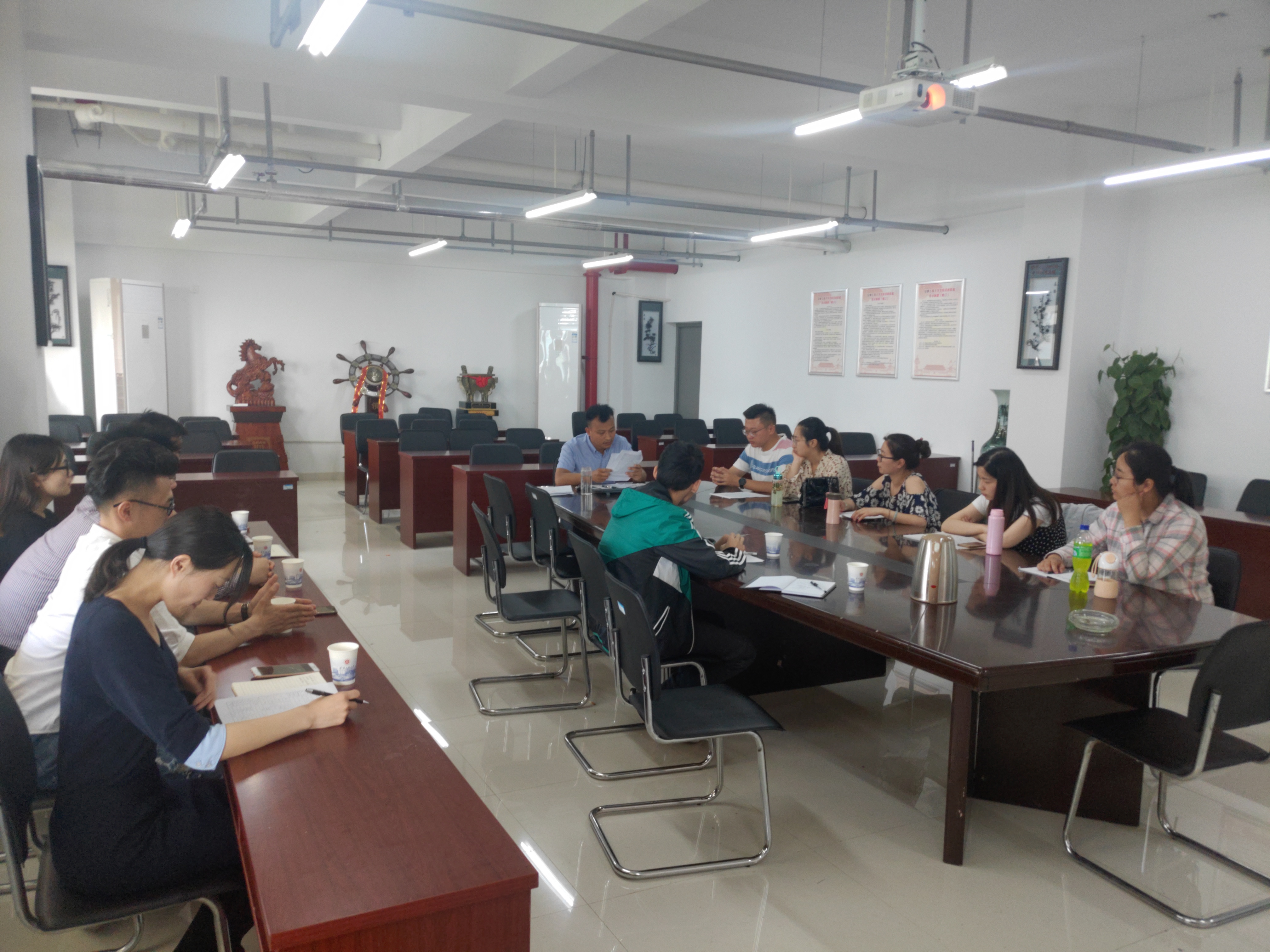 6月3日下午3点,体育学院研究生党支部以“牢记党员身份,争当青年先锋”为主题,在学院会议室开展“毕业生党员主题党日”教育活动,活动由研究生辅导员王建老师主持。活动内容分为三部分:1)重温入党誓词;2)毕业生同学进行学习经验总结;3)师生篮球交流赛。