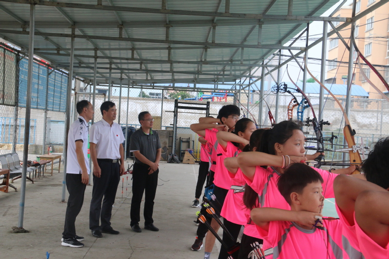 仪式后,与会人员一起观看了青少年射箭队及田径队训练,参观了刚刚竣工的县体育运动中心。