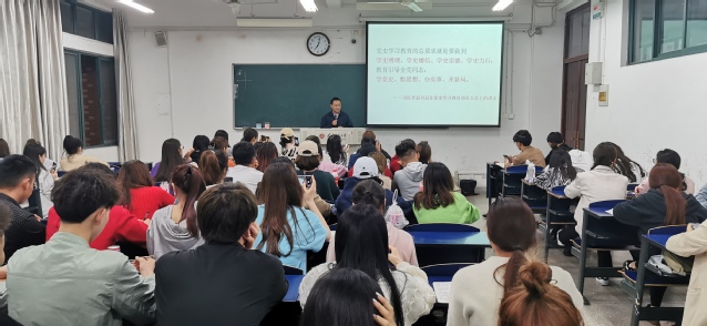 4月28日晚7点,体育学院党总支书记杨善祥在6教208教室为各班级学生代表、研究生代表上了一堂题为“学史增信”的党史教育专题党课。