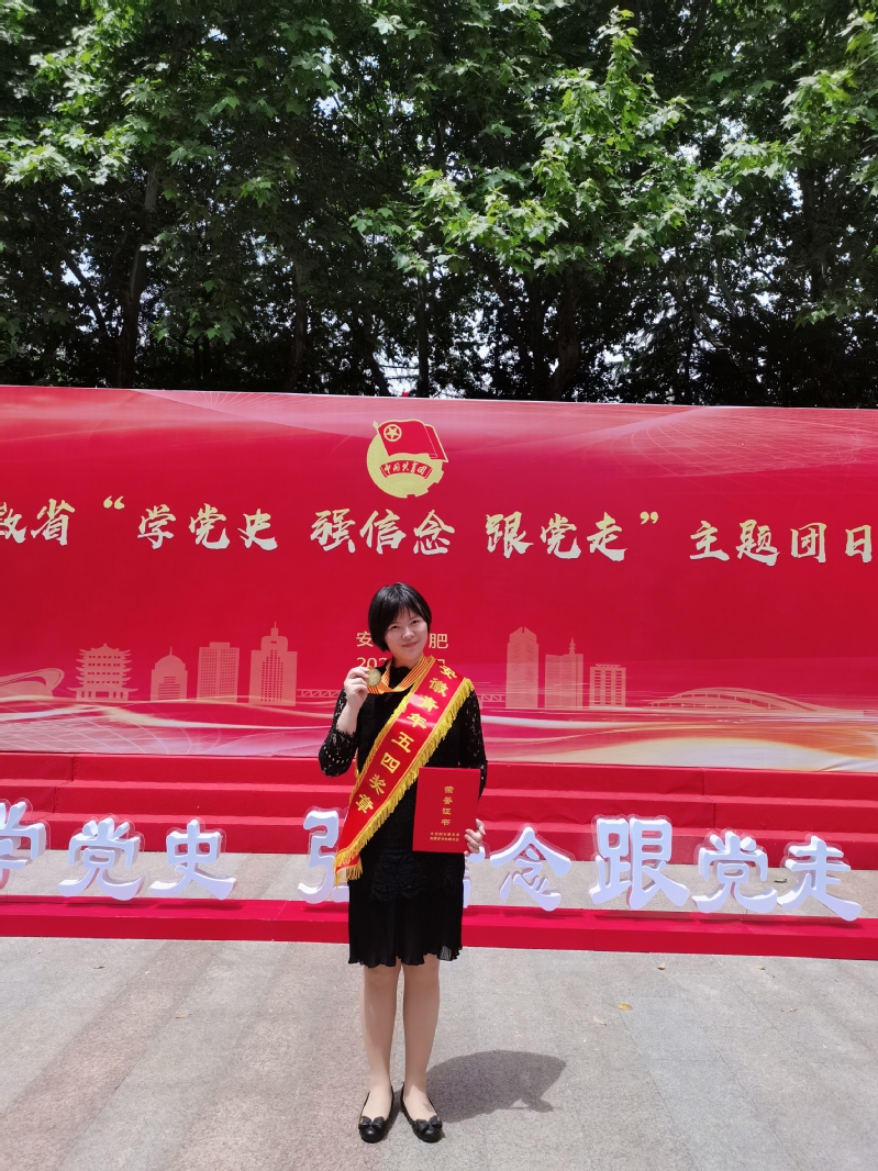 为表彰我省优秀青年在社会发展中的杰出贡献,集中展示新时代安徽青年的精神品格和价值追求,激励全省广大青年牢记初心使命,奋勇建功立业,为加快建设新阶段现代化美好安徽贡献青春智慧和力量,以优异成绩庆祝建党100周年。经专家评委初评终评,共青团安徽省委、安徽省青联决定,授予全省25名个人第24届“安徽青年五四奖章”、10个集体为第24届“安徽省五四奖章集体”。我院黄蓉静老师作为25位优秀代表之一被授予“安徽省青年五四奖章”。