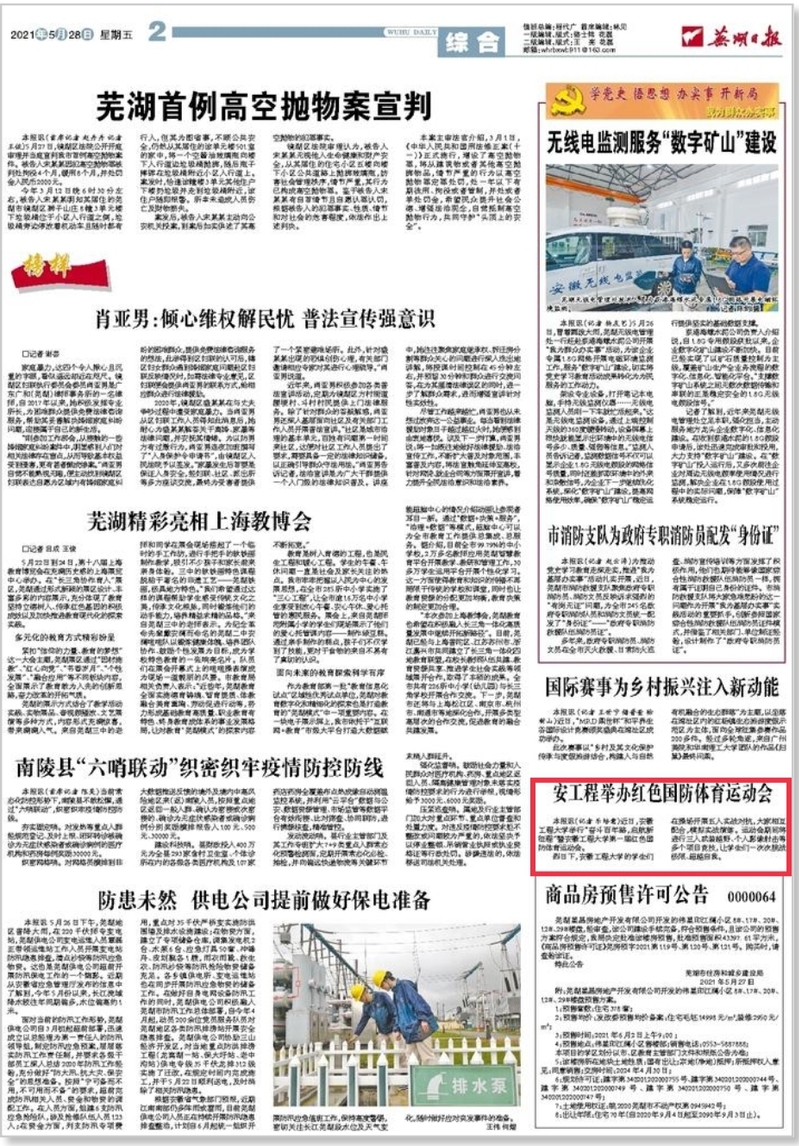 本次红色国防体育运动会不仅是我校首届,更是安徽省内第一次举办国防体育运动类竞赛赛事,是我校为开展爱国主义精神和国防教育,弘扬红色体育精神,强健大学生身体素质的有效探索。比赛从服装、装备到活动内容几乎完全军事化,让每一名参赛人员充分体验冲锋陷阵的感觉,亲身感受国防魅力。比赛一经举办便得到了校内外各级领导机构的高度重视,中国青年报、学习强国,芜湖日报,芜湖电视台等多家新闻媒体同时对此次比赛进行了报道,得到了充分肯定,在全校师生乃至社会上产生了一定的积极影响。