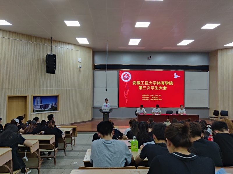 611日下午,体育学院第三次学生大会在2J报告厅顺利召开,学院团委书记孙霞,校学生会主席江周等相关人员出席会议,体育学院193名学生参加会议。会议由体育学院学生会执行主席张文飞主持。