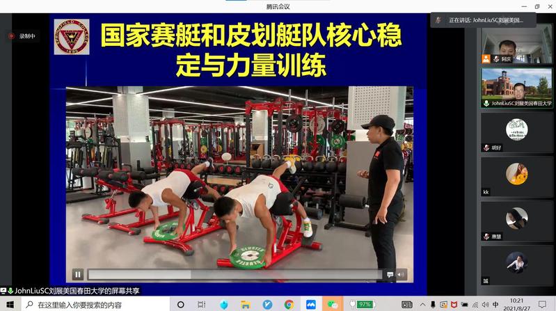 2021年8月27日,应我院邀请,美国春田学院体育健康系终身正教授和博士生导师,美国春田学院霍英东体育运动交流基金项目主任,东京奥运会中国赛艇队特邀体能教练刘展在线为我院作了题为《人体核心理念在脊柱稳定和核心力量训练中的应用》的学术报告。报告会由副院长金庆红主持,学院60余名师生在线收看了报告。