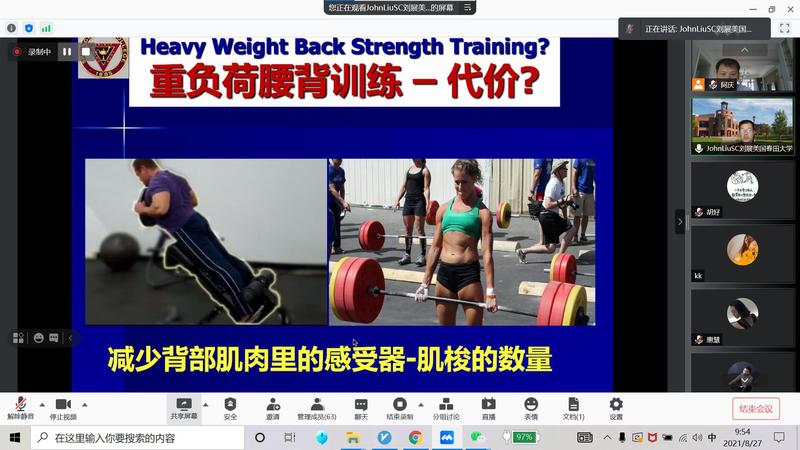 报告会后,刘展还就向心收缩和离心收缩中呼吸的问题、足球运动员核心力量稳定的训练方法以及儿童核心力量训练及矫正等相关问题与在线师生作了互动交流。8月30日刘展教授还将在线为我院师生作题为《运动员爆发力训练的新思路与新方法》的学术报告。