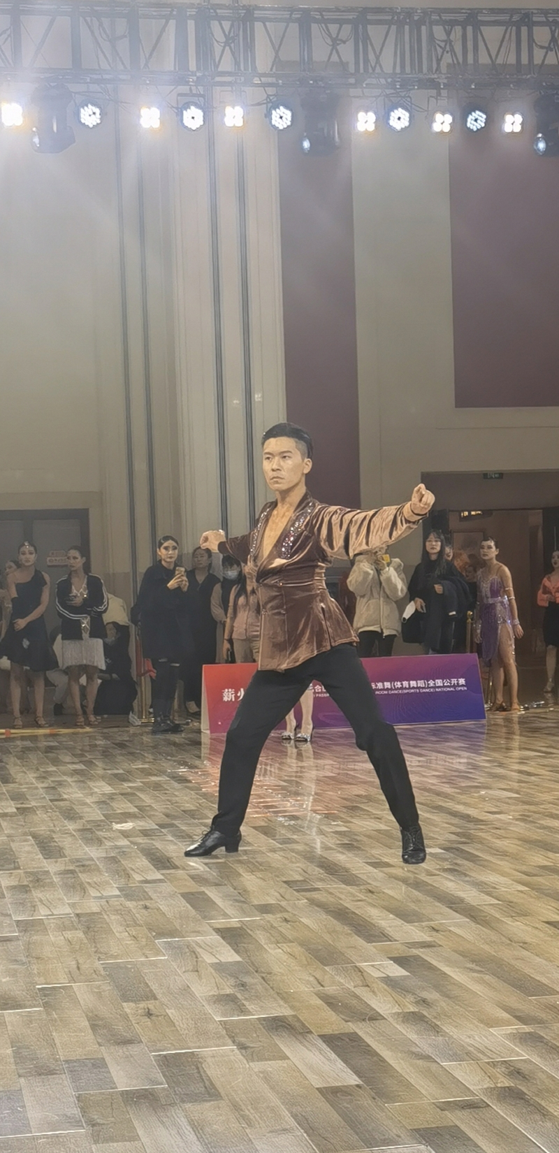 本次比赛有来自安徽多所高校体育舞蹈代表队和各舞蹈机构的选手以及老师们参加,这场体育舞蹈的比赛因为各位选手的竞争对抗和精彩的技术展示而显得格外的激情四射,每一位选手精湛的技术和完美的动作编排让观众们目不暇接,冬天是冷瑟的但是赛场却是火热的,现场的灯光师和乐队的配合让赛场的氛围瞬间被点燃。