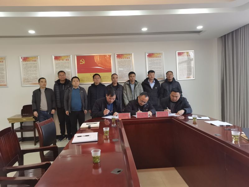 结对共建签约现场,体育学院党总支副书记院长胡好、校团委书记郭广春与团洲村党总支书记王元霖签署共建协议。