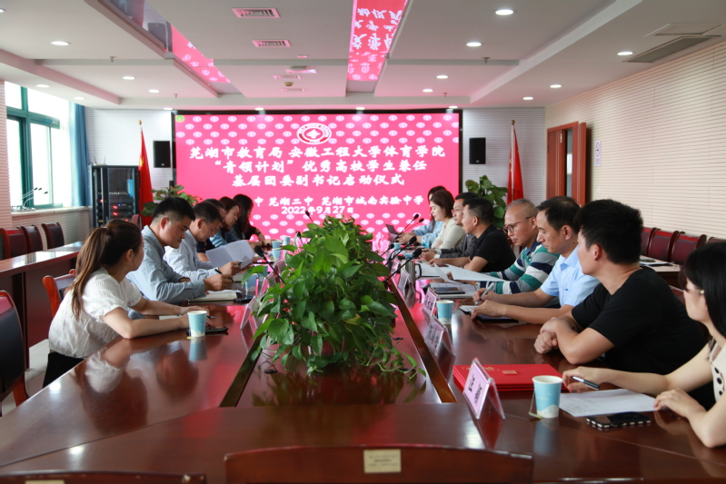 9月27日下午,体育学院、芜湖市教育局“青领计划”启动仪式在芜湖一中行政楼812会议室举行。芜湖市教育局二级调研员唐平、团委副书记孙希彦,体育学院副院长金庆红,体育学院体验产业学院副院长赵德勋,芜湖一中、二中、城南实验中学分管校长,相关部门团委书记及三名挂职大学生参加启动仪式。会议由孙希彦主持。