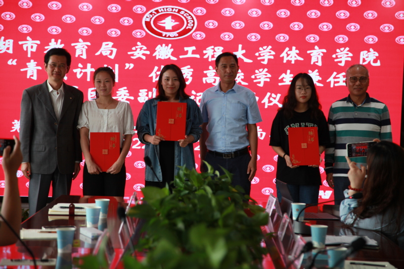 “青领计划”旨在深入学习领会习近平总书记关于青年工作的重要思想,贯彻落实“紫云英人才计划”,助力芜湖人民城市建设,推动“1+14”实践育人共建落到实处。安工程体育学院团委与市教育局团委经过前期的良好沟通,精准对接岗位需求,按照择优选拔、人岗相适的原则选派出三位优秀学子,赴芜湖一中、芜湖二中、城南实验中学挂职锻炼。