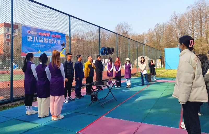 王辉宣布校第八届“挑战自我 高峰相见”大学生主题攀岩大赛正式开幕。