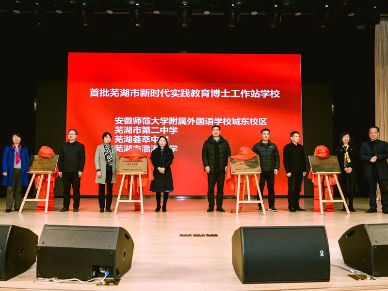 随后,芜湖市教育局与体育学院体验产业学院签署合作协议。王晓燕、伍小平、胡好、吴友义、薛保红等为芜湖市第二中学、芜湖荟萃中学、安徽师范大学附属外国语学校城东校区、芜湖市澛港小学“新时代实践教育创新博士工作站”揭牌。