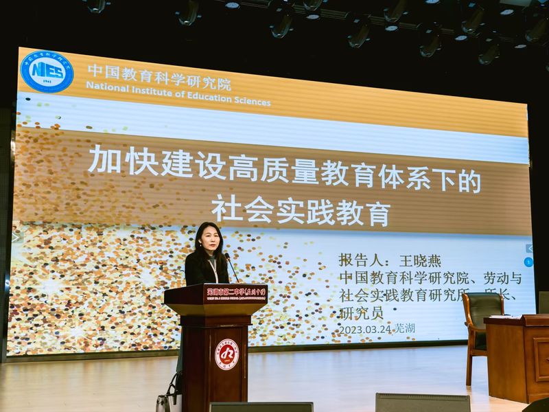 为贯彻《新时代大中小学生劳动教育意见》,落实城市合伙人战略合作精神,推进芜湖市德智体美劳“五大行动”省级实验区建设,探索建立芜湖市中小学在“双减”和“新课标”背景下的“五育融合”实践教育新模式,3月24日,体育学院体验产业学院与芜湖市教育局在芜湖市第二中学(安澜中学)联合举行“芜湖市新时代实践教育博士工作站”签约揭牌仪式和芜湖市中小学“五育融合”实践教育工作培训。教育部中国教育科学研究院劳动和社会实践研究所所长、研究员、博士研究生导师王晓燕,芜湖市教育局党委委员、副局长伍小平,芜湖市教育科学研究所所长吴友义,体育学院院长胡好,体验产业学院执行院长薛保红,“芜湖市新时代实践教育博士工作站”学校校长及相关人员,各县(市)区分管局长及相关科室负责同志,部分区属中小学校长及相关处室负责同志,各直属学校负责同志及相关处室负责同志参加仪式。