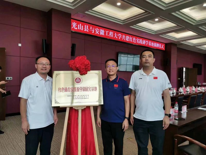 薛保红教授、赵德勋副教授一行于7月20日-22日,赴河南省信阳市光山县、安徽英雄山教育科技有限公司调研合作,与光山县红色文化宣传教育中心、光山县体育服务中心共建红色体育实践教学和研究基地。