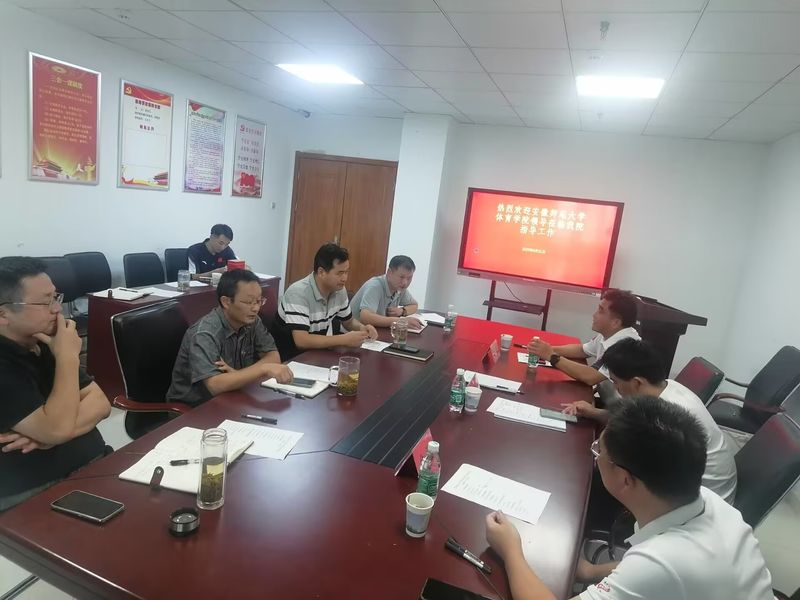 8月31日,安徽师范大学体育学院院长金涛、副院长高升、余涛一行应邀莅临体育学院交流指导。体育学院党政负责人杨善祥、胡好、金庆红、谢叶寿及相关科室负责人参加座谈交流。
