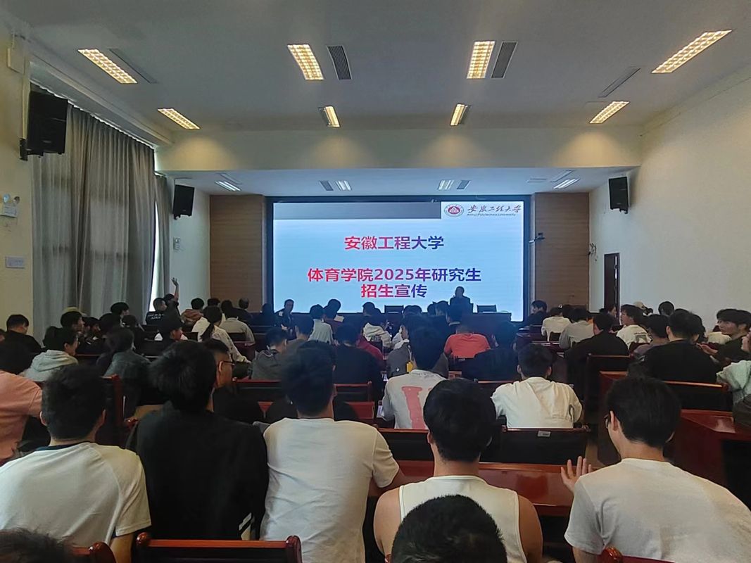薛保红首先围绕“创造美好生活和落实健康中国战略的体育作为”、“体育教育与社会体育的互补错位”进行了体育专业人才发展前景和机遇的专题报告,采用体验教育技术方法与学生现场互动,并着重向学生们讲解了芜湖的城市优势、我校的办学优势、体育学院办学特色和人才培养与发展优势、师资力量和教学资源、研究生招生政策等内容,现场解答了学生的提问。1个小时的宣讲,引起了学生的极大热情,很多同学纷纷表达了报考我校体育硕士研究生的意愿。