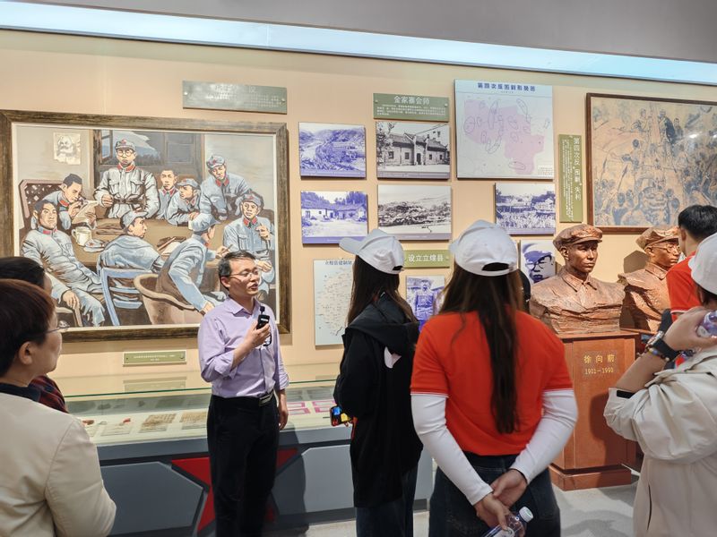 5月2日上午,研学营在安徽金寨红军广场景区举行了庄重的开营仪式。随后,大家沿着红二十五军长征的足迹先后来到河南光山县、罗山县。在这片被誉为红色摇篮的土地上,同学们参观了花山寨会议旧址、邓颖超祖居、王大湾会议旧址及罗山县红二十五军长征纪念馆等地。通过参观珍贵的图片资料和历史文物,聆听感人至深的革命党课,同学们深刻感受到了革命胜利的来之不易,更加坚定了传承红色基因、弘扬革命精神的决心。每一处遗址都承载着中国革命及先辈们的历史记忆,每一段红色故事都激励着后辈青年不断砥砺前行。