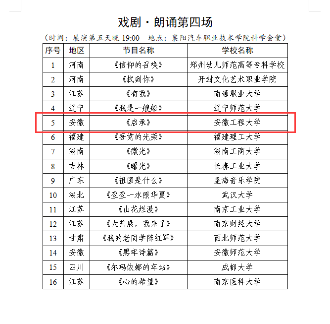 据悉,全国大学生艺术展演活动自2005年开始,每3年举办一届,是我国目前规格最高、规模最大、影响最广的大学生艺术展演活动。本届大学生艺术展演活动启动以来,校团委高度重视、周密筹划,将艺术展演与美育工作和校园文化建设相结合,在相关部门、学院和指导教师的通力协作下,利用暑假时间组织学生排练、录制,选送作品在全省脱颖而出,获得喜人成绩。