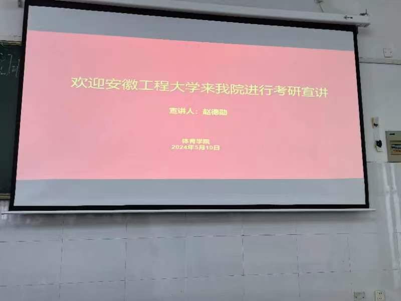 5月10日,受皖西学院体育学院邀请,体育学院委派赵德勋老师前往该校交流并开展研究生招生宣传工作。皖西学院体育学院辅导员和50多名体育教育和休闲体育专业三年级学生参加了宣讲会。