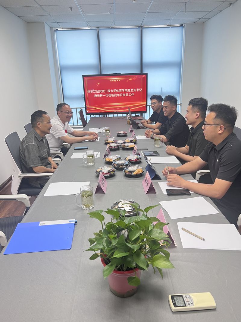 安徽景合旅游开发公司总经理秦允标、杨贺,详细介绍了公司的发展历程、行业发展趋势和企业优势。双方就体育产业、文旅发展趋势、人才培养需求、实习就业基地建设等方面进行了深入交流。