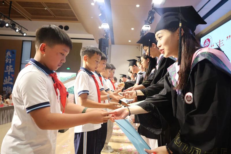 2024届本科毕业生首先用精彩的节目向各位领导、老师、家长进行专业汇报,通过精心编排的拉丁舞、现代舞、民族舞、啦啦操、健美操等节目充分展示了专业学习成果。沈巷中心小学的同学们带来了《萱草花》《杵歌》用甜美的歌声为2024届毕业生送来真挚的祝福。专业汇报在全体毕业生与沈巷中心小学学生互换纪念品中结束。