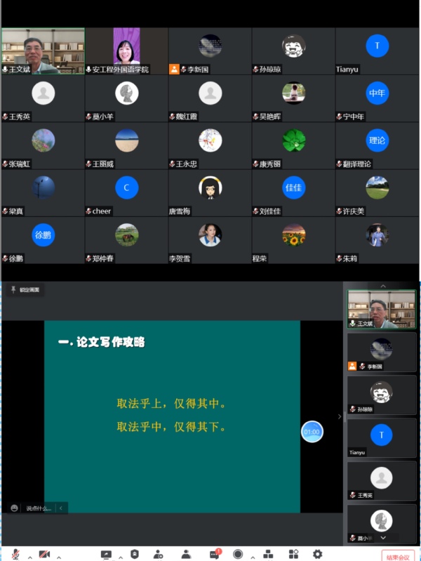 4月28日下午,应科技处、研究生部和外国语学院的邀请,北京外国语大学教育部人文社科重点研究基地“中国外语与教育研究中心”主任、国家社科基金语言学学科评议组专家、博士生导师王文斌教授应邀为外国语学院师生作学术报告。报告以线上会议方式举行,由外国语学院副院长唐雪梅教授主持,学院骨干教师和部分研究生聆听了报告会。