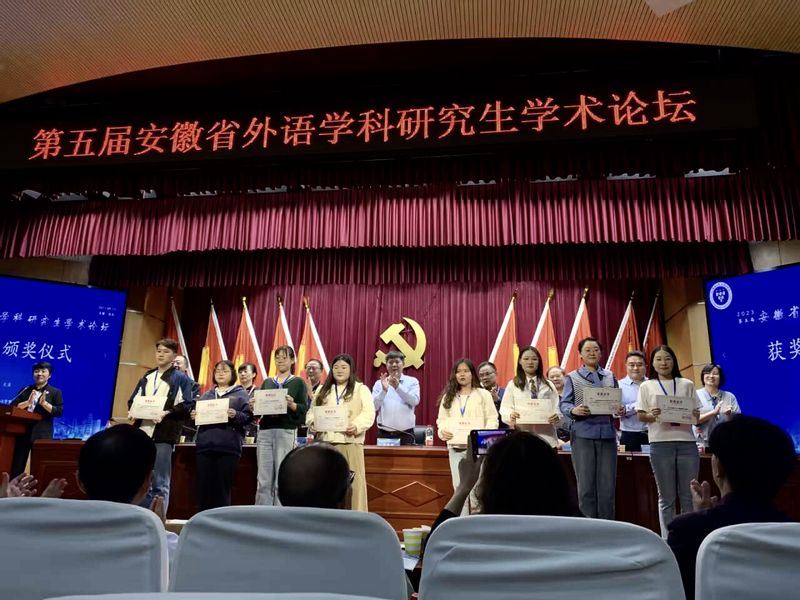 近日,在由安徽省外国语言文学学会主办,淮北师范大学外国语学院承办的第五届安徽省外语学科研究生学术论坛中,我校唐雪梅教授指导的三位研究生投稿论文分获翻译组一等奖和语言学组一、二等奖,从合肥工业大学、安徽大学、安徽师范大学、安徽工业大学、安徽理工大学等二十余所省内高校投出的150多篇论文中脱颖而出。