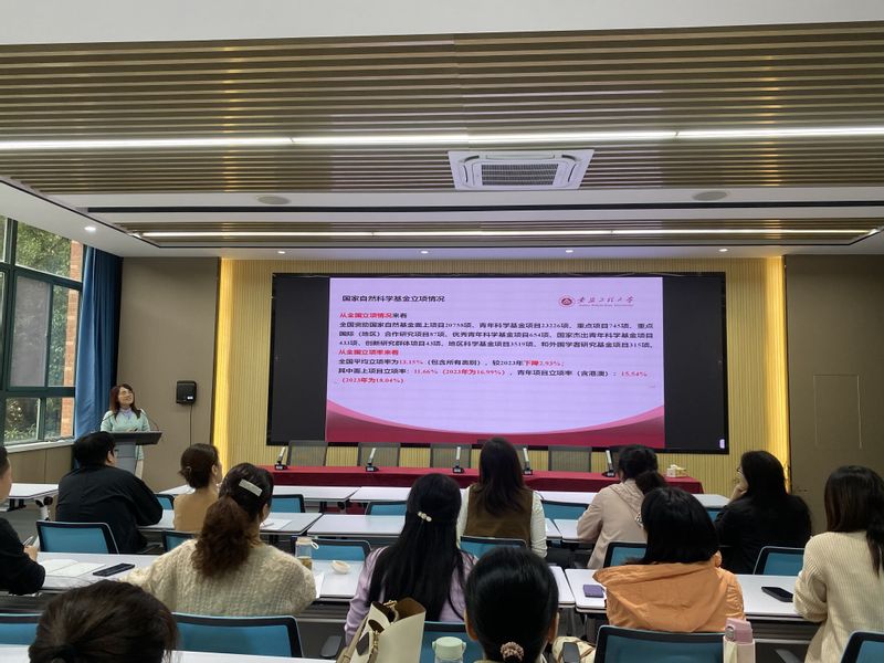 随后,韩利敏回顾了学校2024年国家社科基金立项情况和学院申报情况,通过详细图表和数据内容布置了学院2025年国家社科基金申报工作。同时,她从选题方向、研究设计、注意事项等六大方面做了精准辅导,鼓励教师们要勇于尝试、敢于创新,通过国家社科基金的申报,进一步提升自己的科研能力和水平。