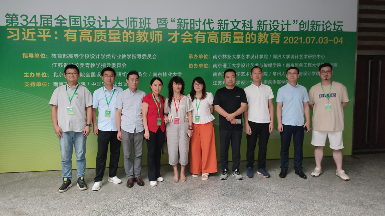 2021年7月3-4日,第34届全国设计大师班(南京站)暨“新时代·新文科·新设计”创新论坛在南京林业大学举办。我校艺术学院10名教师代表在王小元副院长的带领下,与来自全国36所院校的263名学员参加了此次活动。
