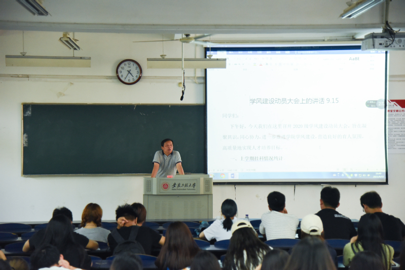 为进一步推进学院学风建设,营造良好的育人氛围,9月15日下午,艺术学院在6教112召开学风建设动员会。学院党委副书记任家钱,2020级辅导员、各班班长、学习委员和考试出现不及格的学生参加会议。