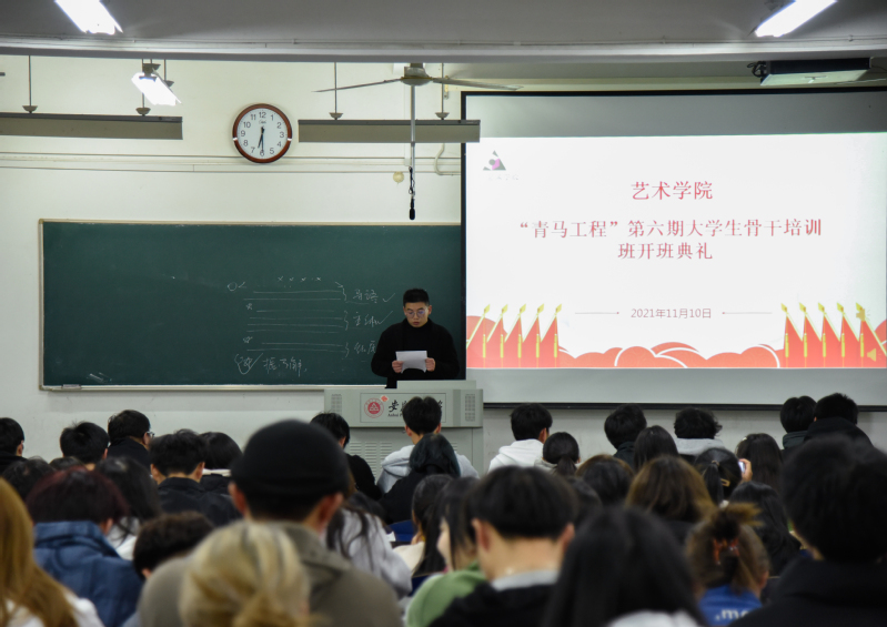11月10日晚,艺术学院于六教211举行第六期“青年马克思主义者培养工程”大学生骨干培训班开班典礼。院党副委书记胡家增、任家钱,团委负责人叶杨,培训班班主任吴旭及全体青马班学员参加此次开班典礼,典礼由班主任吴旭老师主持。