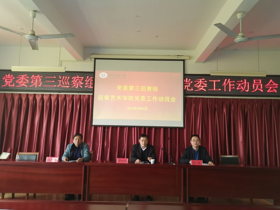 根据校党委关于巡察工作的统一部署,4月6日下午,党委第三巡察组巡察艺术学院党委工作动员会召开。会前,巡察组组长周晓宏主持召开了与学院领导的见面沟通会,传达了学校党委书记张志宏在3月24日第四轮巡察工作动员部署会上的讲话精神,通报了有关工作安排。