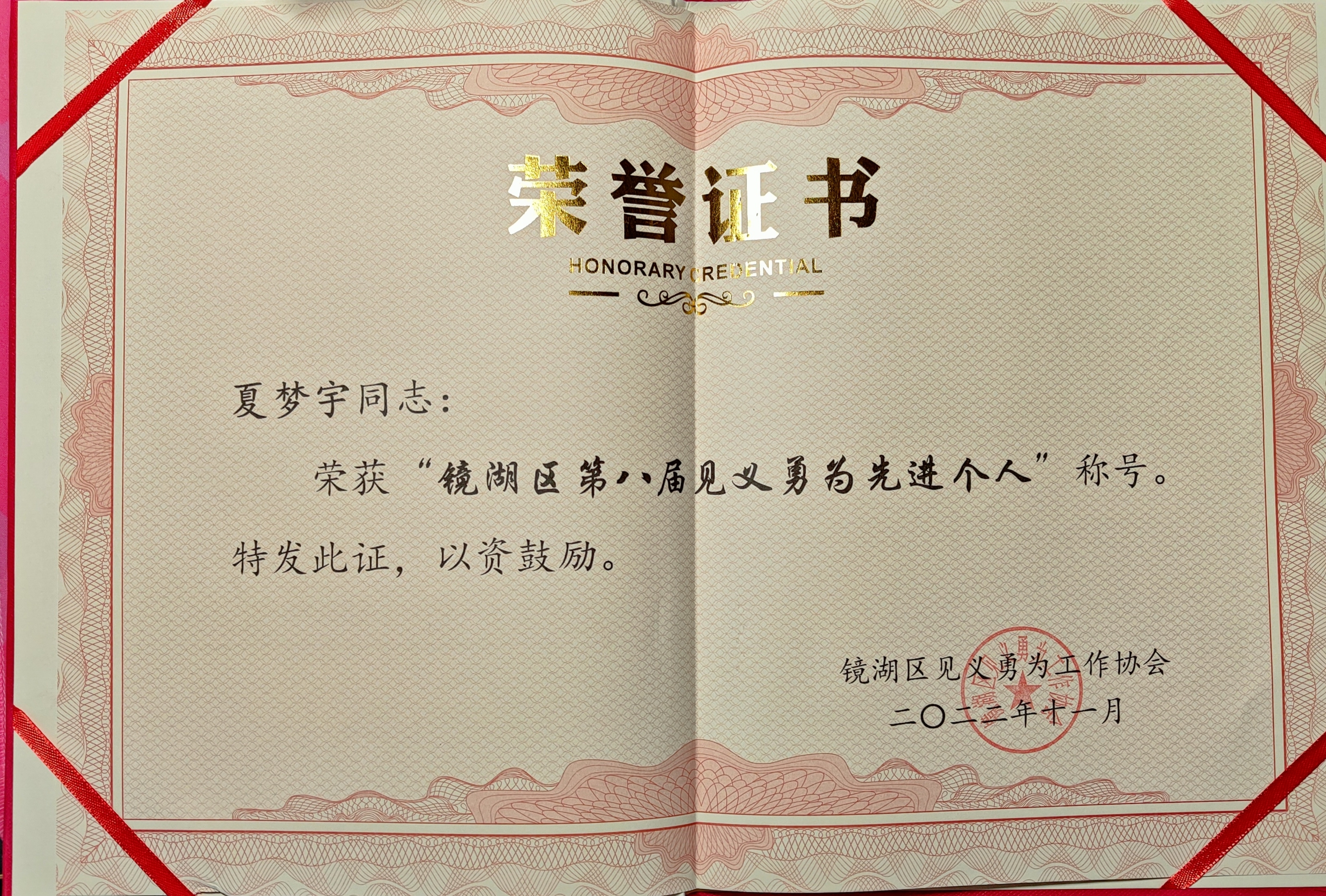 近日,芜湖市镜湖区第八届“见义勇为先进个人”名单发布,艺术学院工业设计141班伊育城(已毕业),工业设计192班夏梦宇、曾刚3名同学荣获“见义勇为先进个人”二等奖。
